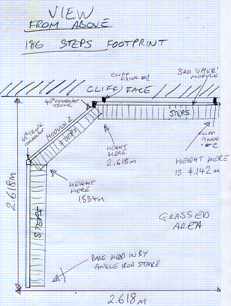 The footprint of the “186 steps” will reach 2.7 metres from the cliff face. It will sweep through 1.6 metres before joining the cliff. Its upper point will finish at a point 4.2 metres high on the cliff.