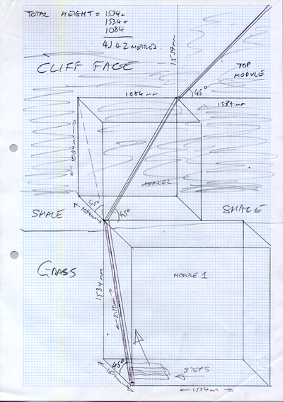 As the work is modular, it can be assembled on the ground. I will need access by ladder to fix the final part of the piece securely to the cliff wall. The highest point will reach 4.2 metres from the grass.